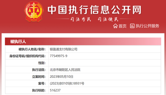 案號“(2023)京0105執18931號”顯示,機構北京市朝陽區人民法院于2023年5月10日將銀盈通支付有限公司列入了被執行人,被執執行標的行人516237元。據悉,國美此次銀盈通支付被列入被執行人名單與深圳市欽辰科技有限公司的旗下相關合同糾紛有關。